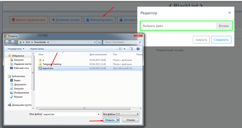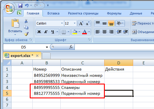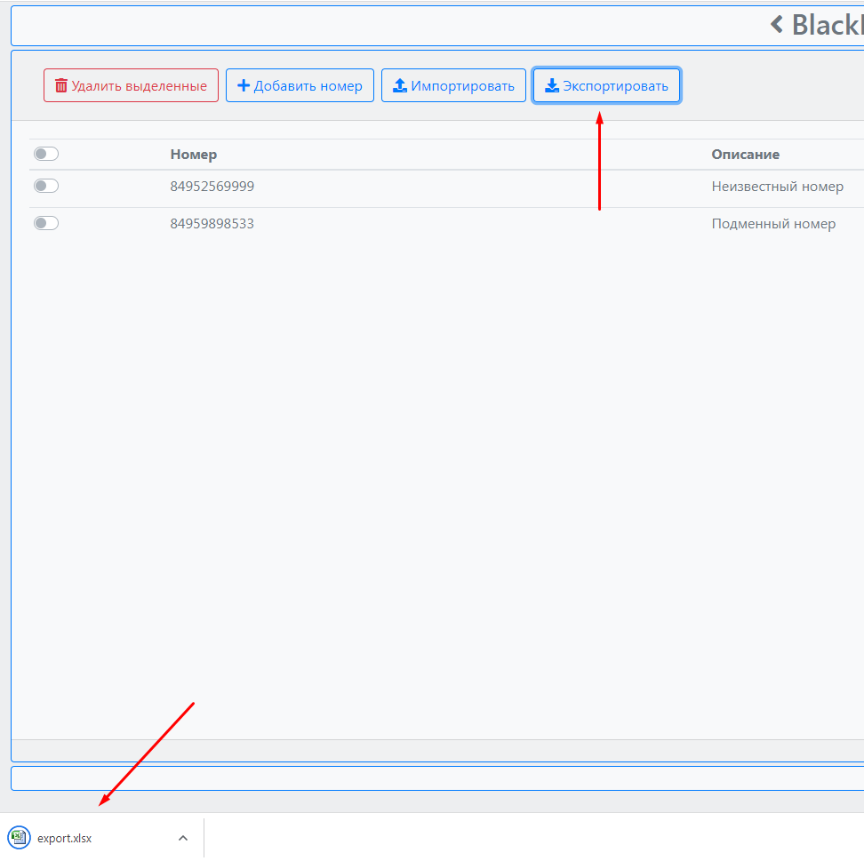Самое примечательно мы оставили на последок: импорт и экспорт номеров большими списками. Для сохранения списка себе на ПК достаточно отфильтровать нужные данные и нажать кнопку «экспорт»