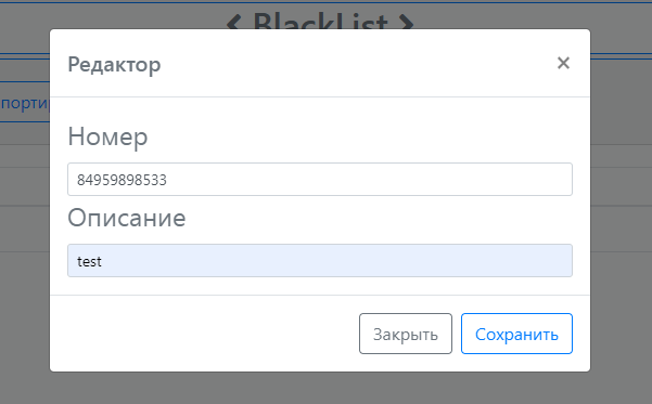 Теперь мы можем открыть интерфейс приложения. Для этого открываем браузер и переходим по адресу: https://<ip_asterisk>/blacklist. На странице должен открыться инструмент редактирования базы номеров.